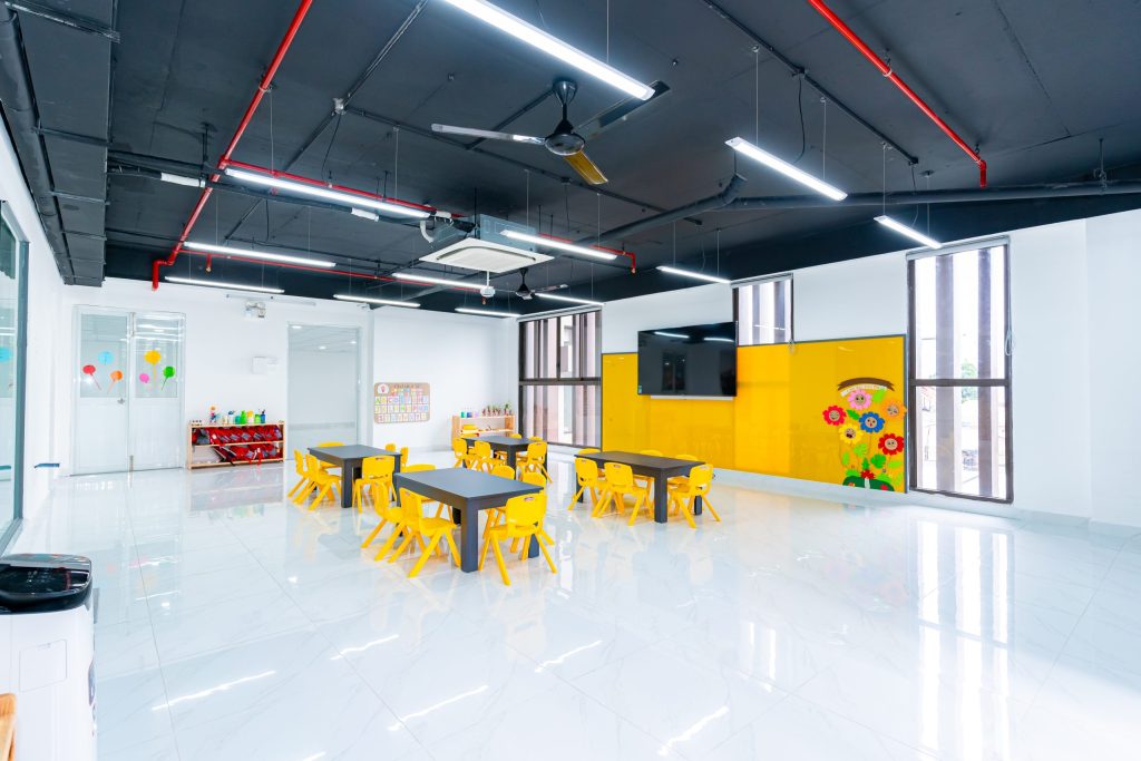 Chi nhánh Long Thành được thiết kế với không gian thoáng mát, rộng rãi, mang đến môi trường học tập hiện đại. Tại đây, các bạn nhỏ được khám phá thế giới song ngữ thông qua các hoạt động tương tác, vui chơi và học tập sáng tạo. Đội ngũ giáo viên giàu kinh nghiệm tại INKINDY Long Thành luôn đồng hành cùng bé trên hành trình phát triển toàn diện, nơi mỗi bé đều được tôn trọng như một cá thể độc lập và được khuyến khích thể hiện bản thân.