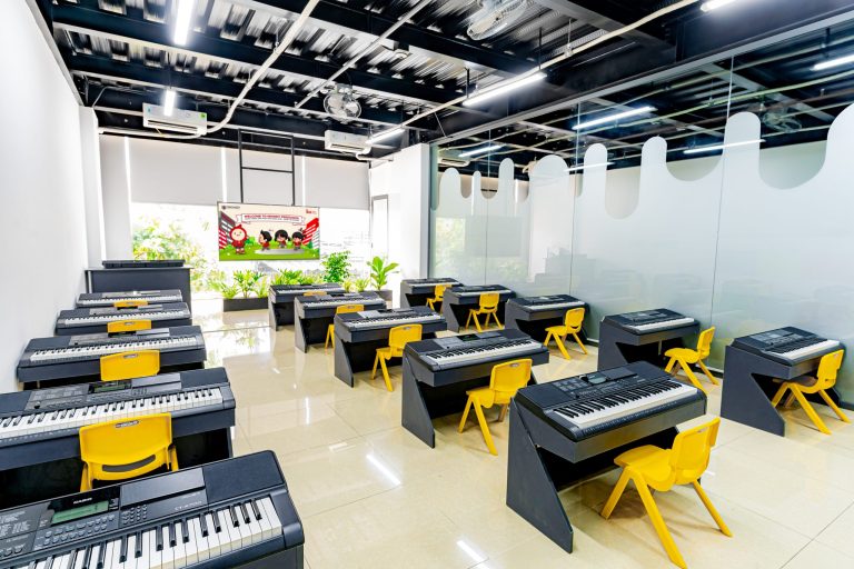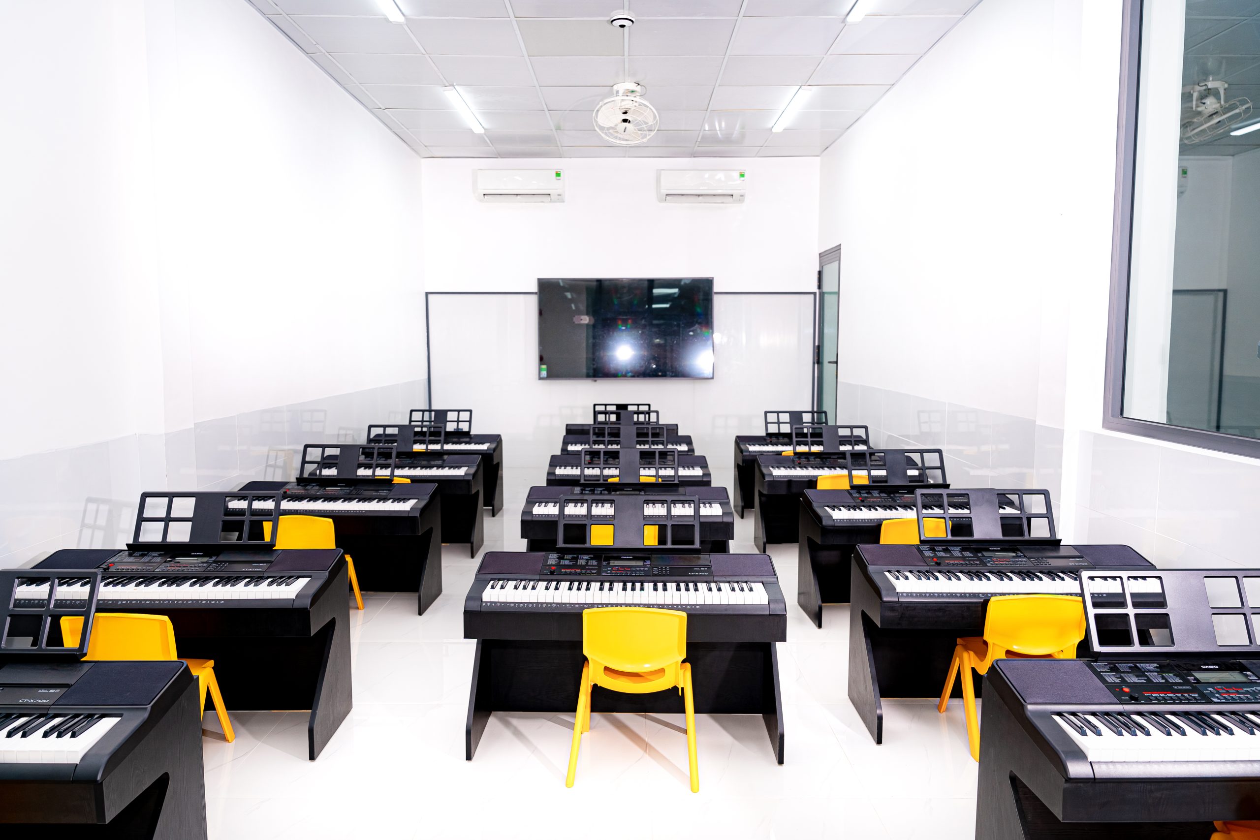 Phòng đàn hiện đại, con thoải mái hát ca. Các con sẽ được học trong không gian hiện đại với những chiếc đàn organ cùng giáo viên bộ môn, phát huy năng khiếu nghệ thuật ngay từ những năm tháng đầu đời.