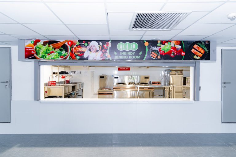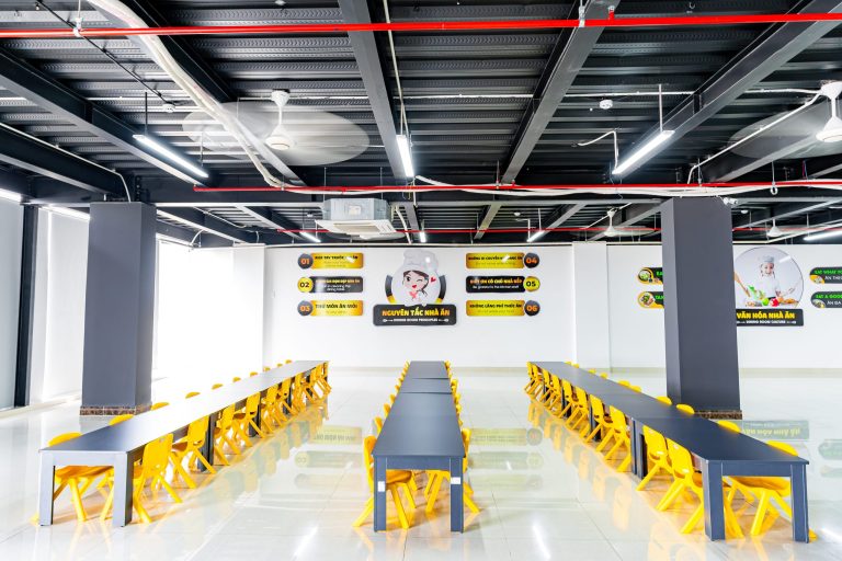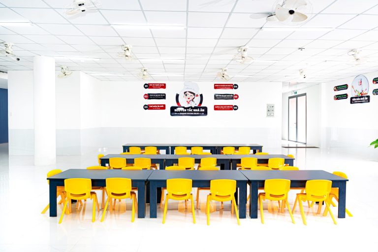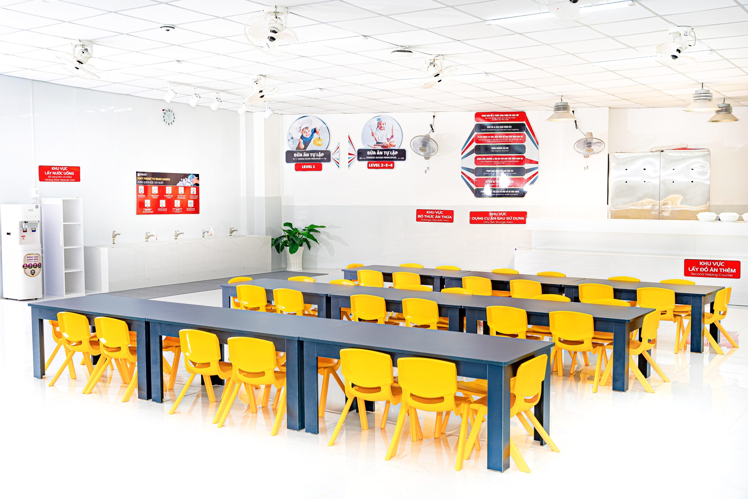 Nhà ăn và khu vực bếp sạch sẽ mang đến cho con những bữa ăn thật ngon miệng.